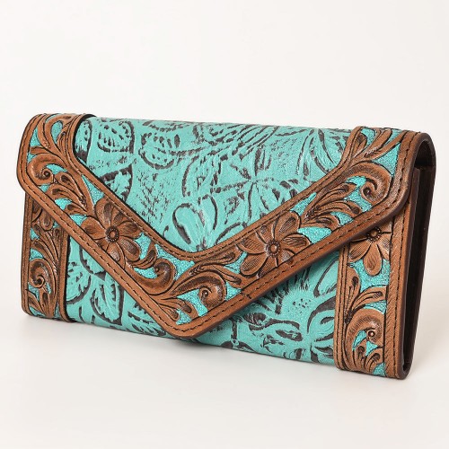 OHLAY WALLET Hand Tooled Crocodile Embossed Genuine Leather women bag western handbag purse