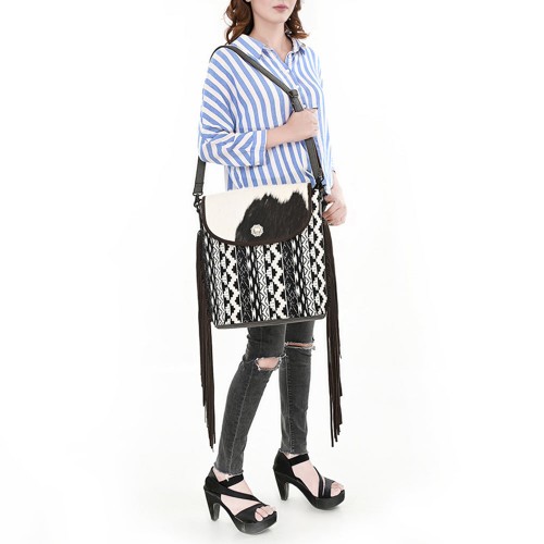OHLAY Tote Hair On Upcycled Canvas Genuine Leather Women Bag Western Handbag Purse