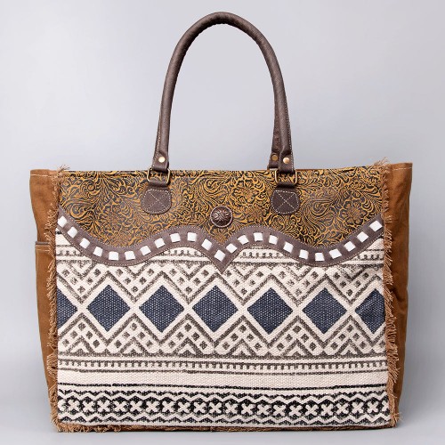 OHLAY WRISTLET Upcycled Wool Canvas Genuine Leather women bag western handbag purse