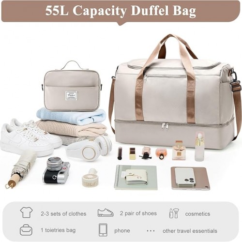 Extra Large Travel Duffle Bag with Shoe Compartment & Toiletry Bag, XL Weekender Bags for Women, Carry On Overnight Bags for Gym Sports, Water-Resistant Hospital Bag for Labor and Delivery