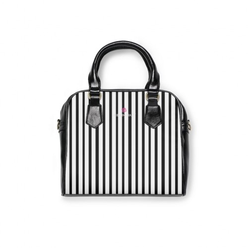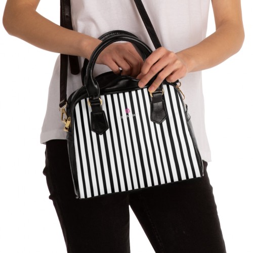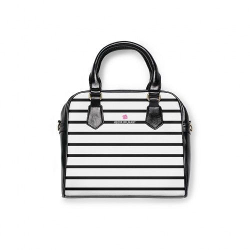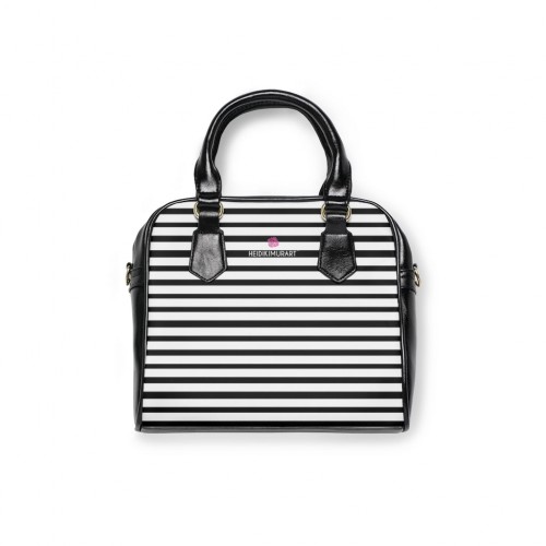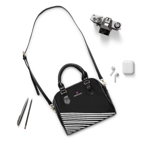 Black Striped Print Shoulder Handbag, Best Designer Ladies’ 9.45″ x 8.27″ Shoulder Handbag Black
