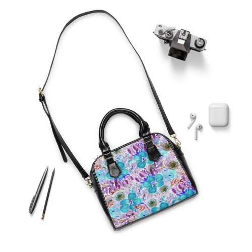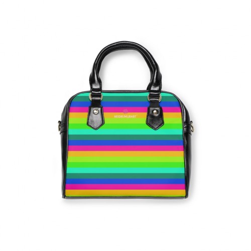 Blue Striped Shoulder Handbag, Colorful Best Designer Ladies’ 9.45″ x 8.27″ Shoulder Handbag Black