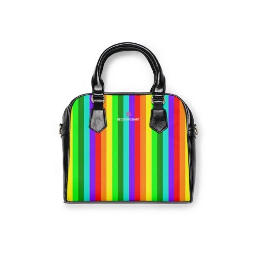 Best Rainbow Small Handbag, Colorful Best Designer Ladies’ 9.45″ x 8.27″ Shoulder Handbag Black