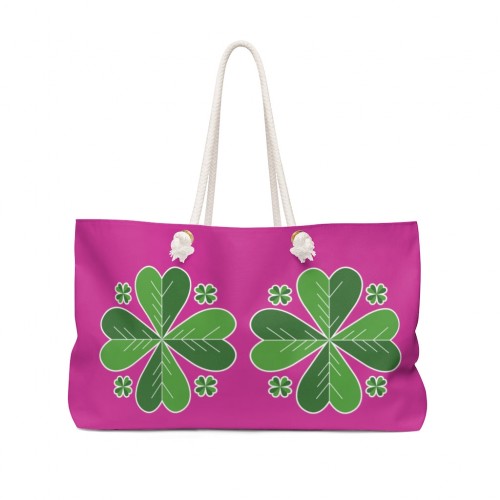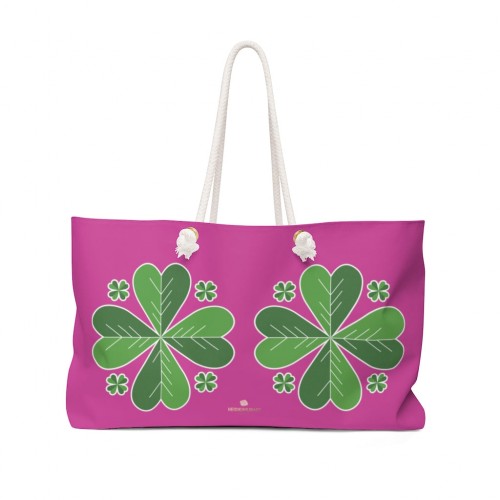 Hot Pink Green Clover Tote Bag, St. Patrick’s Day Irish 24″x13″Weekender Bag- Made in USA 24×13