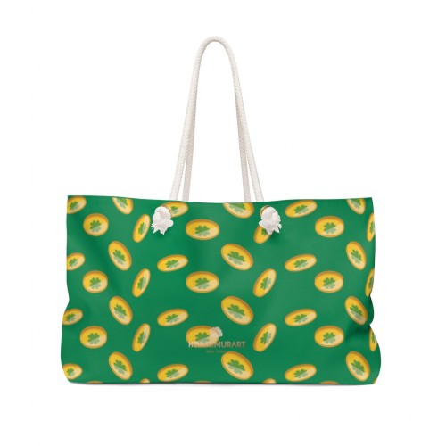 Gold Coins Weekender Bag, Green Irish Style St. Patrick’s Day 24″x13″ Tote Bag- Made in USA 24×13