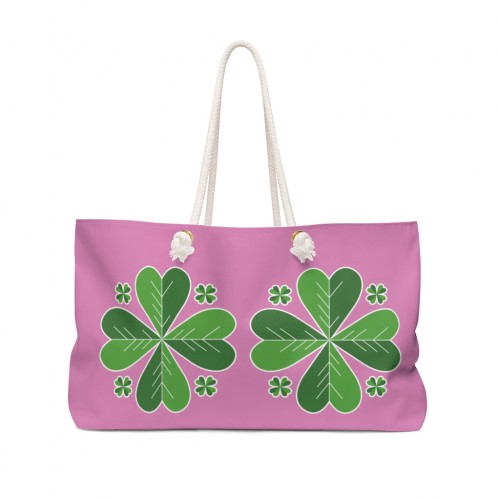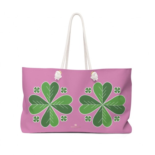 Light Pink Green Clover Bag, Leaf St. Patrick’s Day Irish 24″x13″Weekender Bag- Made in USA 24×13