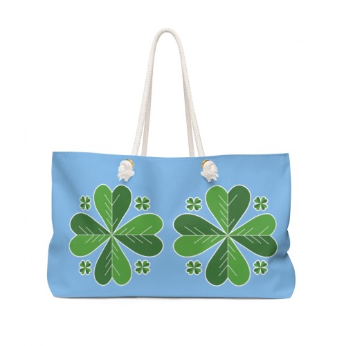 Light Green Clover Bag, St. Patrick’s Day Irish 24″x13″ Oversize Weekender Bag- Made in USA 24×13