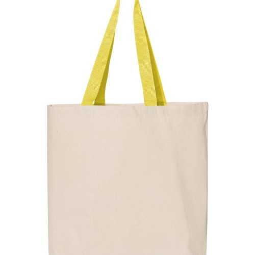 Q-Tees Q4400 11L Canvas Tote with Contrast-Color Handles – Natural Yellow One Size Fits Most