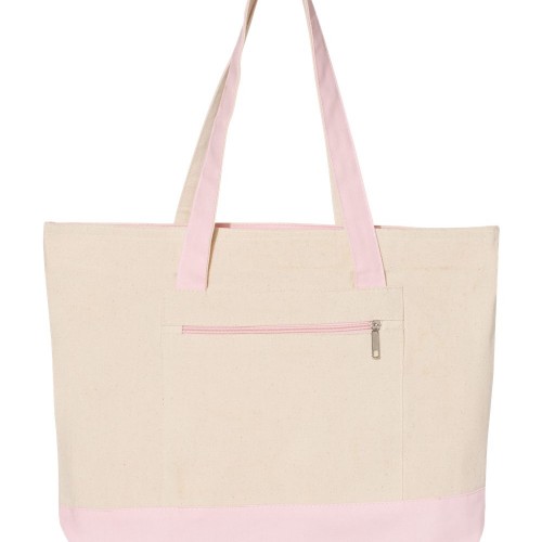 Q-Tees Q1300 19L Zippered Tote – Natural Light Pink Natural/ Light Pink One Size Fits Most