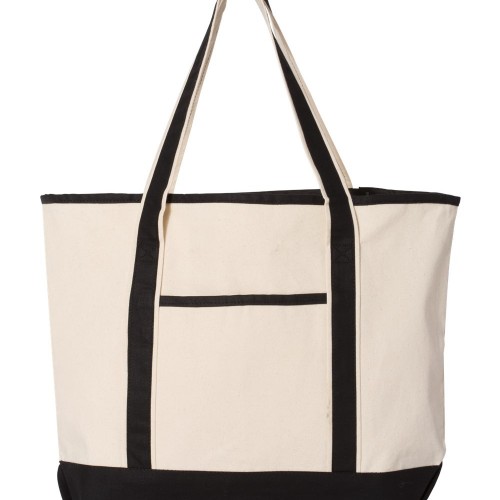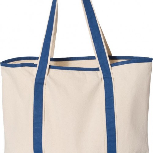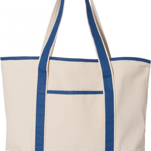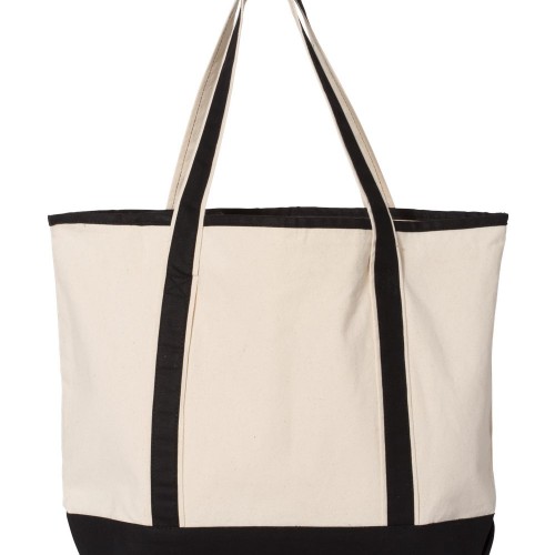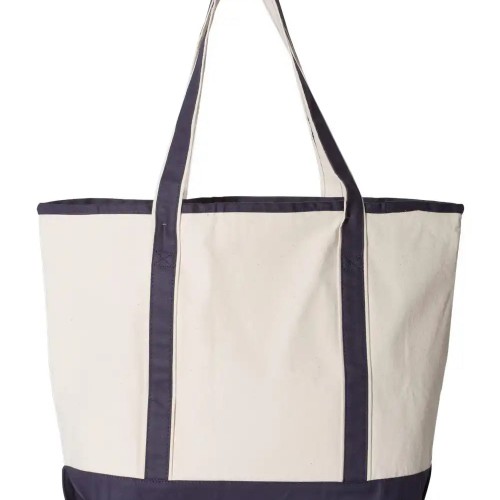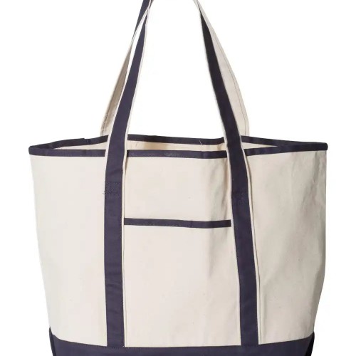 Q-Tees Q1500 34.6L Large Canvas Deluxe Tote – Natural Navy Ivory Navy One Size Fits Most
