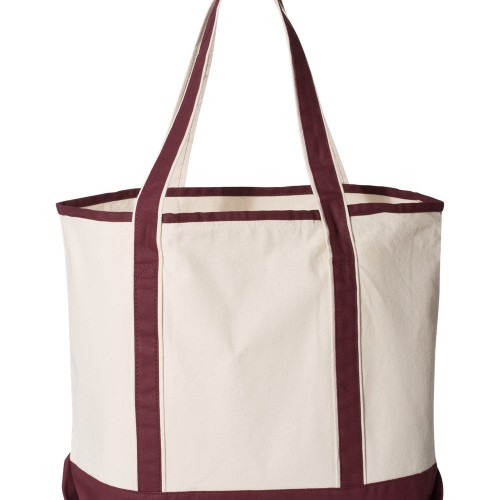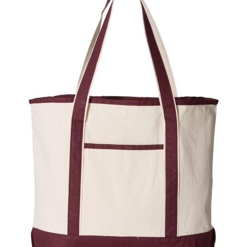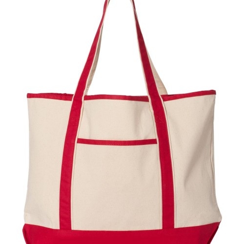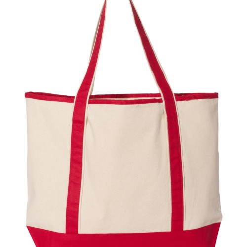 Q-Tees Q1500 34.6L Large Canvas Deluxe Tote – Natural Red Ivory Red One Size Fits Most