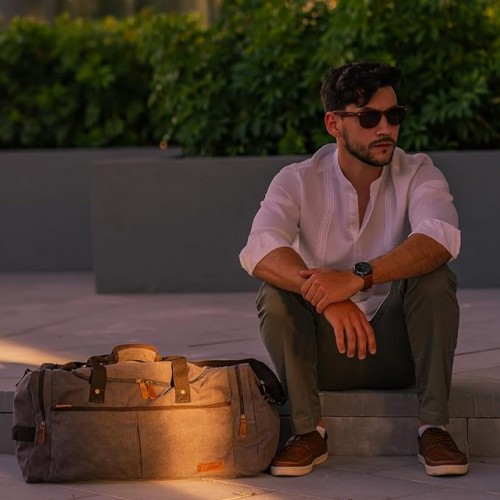 S-ZONE Canvas Duffel Bag for Travel 45L Weekender Overnight Bags with Shoes Compartment for Men