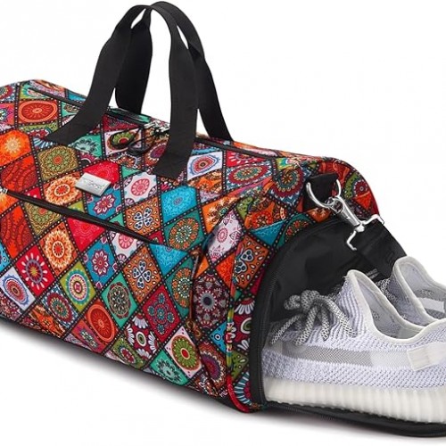 TOPDesign Gym Bag for Women, Duffel Bag with Shoe Compartment & Wet Pocket for Travel Sports (M Yoga)