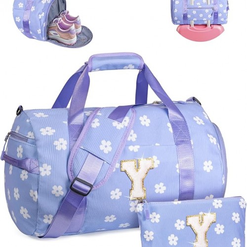 2 Year Old Girl Birthday Gifts, Girls Gym Bag, Kids Personalized Weekend Duffel Bags with Shoe Compartment, Initial Travel Tote with Makeup Bag, Stocking Stuffers for Tween (Letter G)
