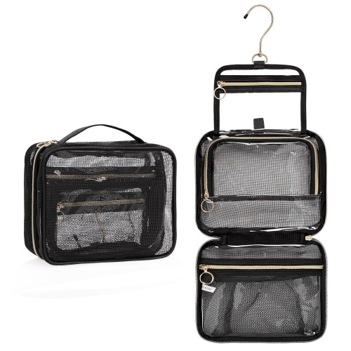 - Double layered Design: Sturdy quality zipper and double stitching throughout allow you to really load these up with carrying handles; This clear cosmetic bag with double zipper pulls keeps all your belongings safe