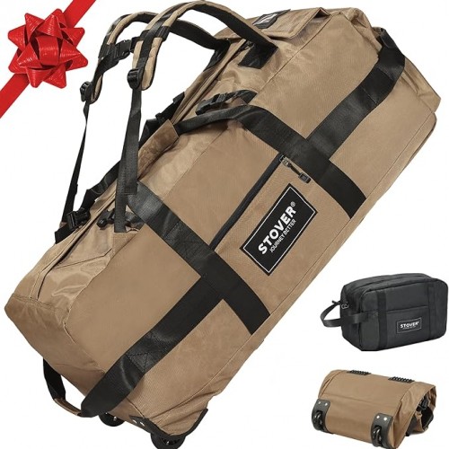 32” 1680D Oxford Foldable Duffle Bag with 2 Wheels,110L to 140L Expandable Soft Sided Rolling Travel Bag,Black-red