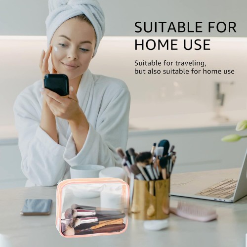 4Pcs Crystal Clear PVC Travel Toiletry Bag Kit for Women Men, Waterproof Vinyl Packing Organizer Storage Bags with Zipper Handle Straps, Cosmetic Pouch Carry on Airport Airline Compliant Bag Handbag