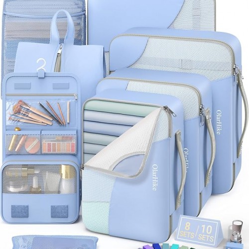 8 Set Packing Cubes for Travel, Gifts for Women Mom,Anti-Tearing Suitcase Organizer for Luggage with Shoe & Hanging Toiletry Bag,OlarHike Vacation Essentials & Accessories for Cruise Ship, Purple Gray