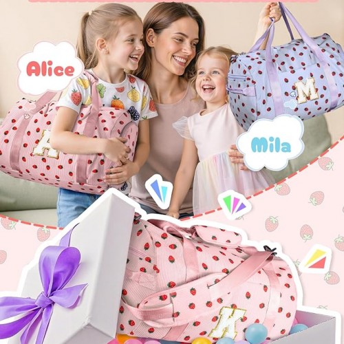 9 Year Old Girl Birthday Gifts, Girls Gym Bag, Kids Personalized Weekend Duffel Bags with Shoe Compartment, Initial Travel Tote with Makeup Bag, Cute Stuff for Daughter (Letter P)