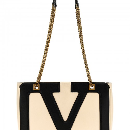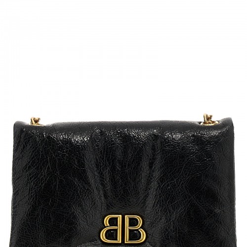 ‘Grace’ leather crossbody bag, embossed logo, flap closure with front interlocking metal detail, adjustable shoulder strap.