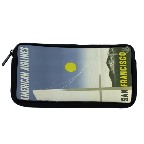 This travel pouch measures 4″ x 8″ x .125″. It is made of black neoprene and is perfect to use on your next trip.