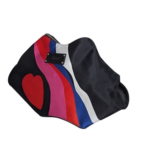 Embrace an edgy, romantic vibe with the Alexander McQueen Manta Clutch! Guaranteed to make a statement, this sleek satin bag is adorned with a lovely heart and stripe print in red, pink, and blue. Designed with a unique manta ray-inspired shape, it’s a must-have addition to your It-Girl gear!