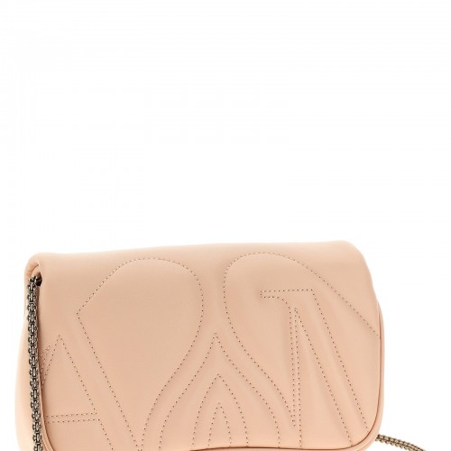 Padded leather ‘The mini seal’ crossbody bag with stitching, metal detail closure, chain shoulder strap.