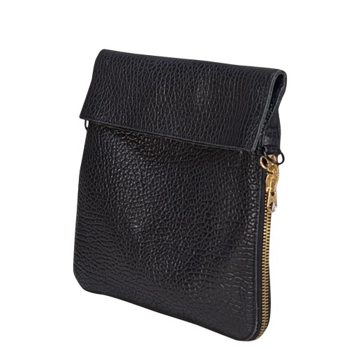 Rock the rebel chic style with the Ampersand As Apostrophe black leather fold-over crossbody bag! Made of black pebbled leather, this messenger bag features a bold neon green strap for an eye-catching look. Perfect for those who want to make a statement, while keeping their hands free.