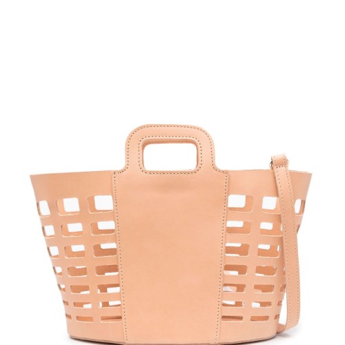 Demijohn bucket bag from ANCIENT GREEK SANDALS featuring calf leather, bucket body, cut-out top handle, concealed press-stud fastening, adjustable detachable shoulder strap and main compartment.