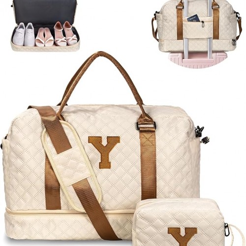 Bachelorette Personalized Weekender Travel Bag with Monogram, Shoulder Strap, Overnight Bag for Women (Letter W)