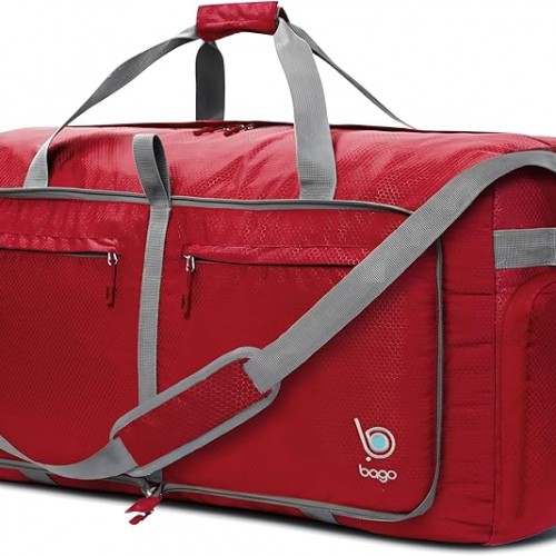 Bago Big XXL Foldable Duffel Bags for Traveling Women & Men – 140L Packable Duffle Bag for Travel with Shoe Compartment – Water Repellant, Heavy Duty, Lightweight Folding & Collapsible (Black)