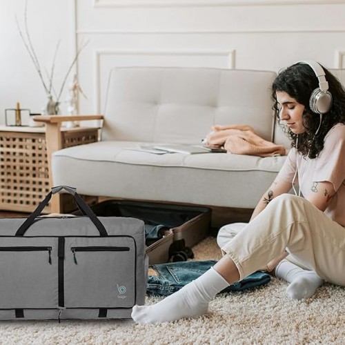 Bago Foldable Duffel Bags for Traveling Women & Men – 60L Medium Packable Duffle Bag for Travel with Shoe Compartment – Water Repellant, Heavy Duty, Lightweight Folding & Collapsible (SnowGray)