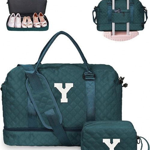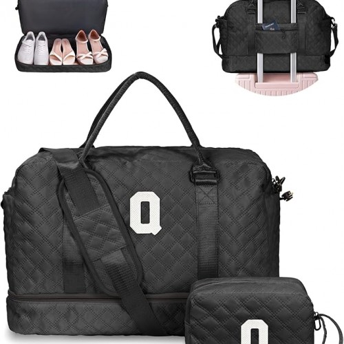 Bags for Women College Gifts-Initial Duffle Bag with Shoe Compartment, Weekender Bag, Monogram Overnight Bag, Letter Travel Bag with Makeup Bag, Bachelorette Gifts for Bride (Letter Q)