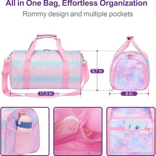 - Dry and Wet Separation & Shoe Compartment & Laundry Bag: Our girls duffle bag features a waterproof pocket to keep wet items separate and everything else dry. A dedicated compartment for your child’s sports shoes, dance shoes, will not stain anything else. A laundry bag is included to separate dirty clothes