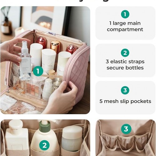 BAGSMART Travel Toiletry Bag, Large Capacity Cosmetic Bags for Women with Hanging Hook, Water-resistant for Toiletries Accessories Brushes Sponge, With Handle