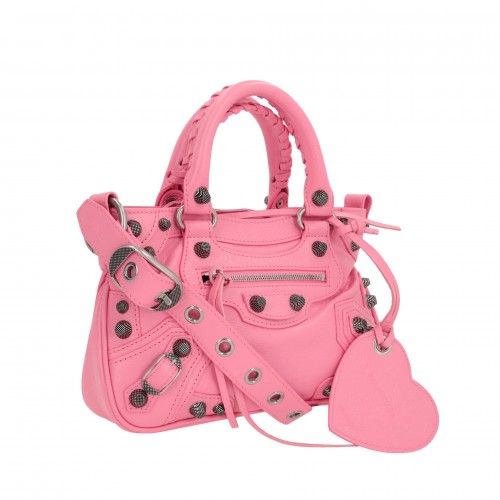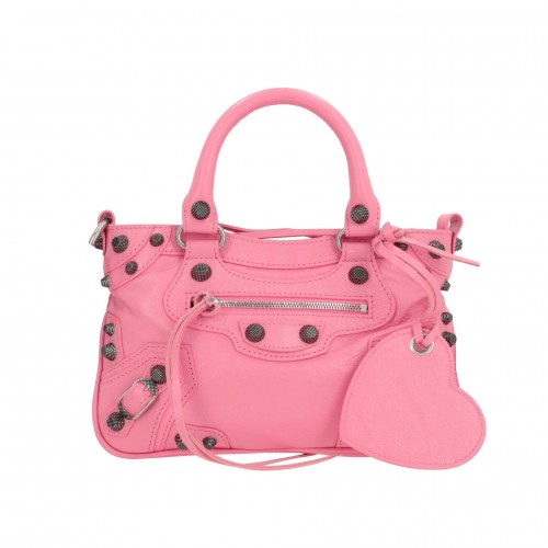 Mini shoulder bag by Balenciaga in butter calfskin and aged-silver hardware. Featuring adjustable shoulder strap, leather braided shoulder pad, zipped closure with knotted leather puller, one removable zipped pouch, one removable heart mirror, tone-on-tone logo embossed on mirror and cotton canvas lining.