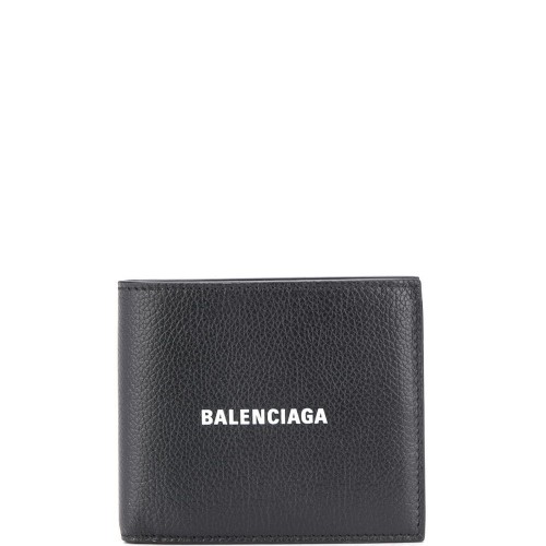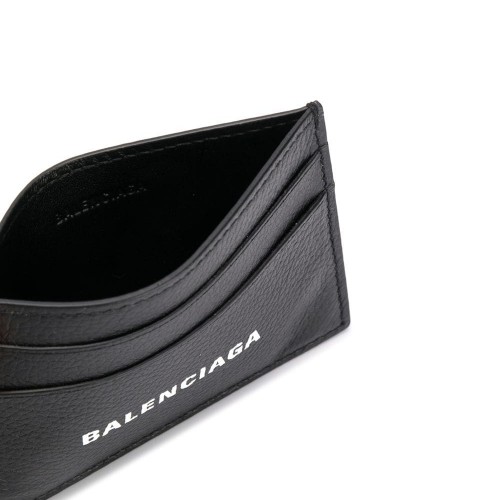 Black/white leather logo print cardholder from BALENCIAGA featuring card slots, front pouch pocket and embossed logo to the front.