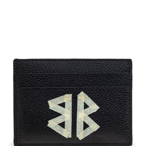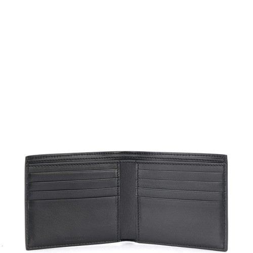 Black/white leather square folded wallet from BALENCIAGA featuring foldover top, embossed logo to the front and card slots.