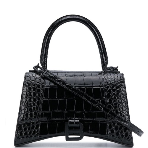 black calf leather embossed crocodile effect foldover top with magnetic fastening single circular top handle detachable shoulder strap signature B logo plaque hourglass silhouette slip pocket to the rear main compartment internal zip-fastening pocket internal logo stamp We’ve partnered with Good On You — an independent agency that rates how brands perform in relation to their impact on the planet, people and animals, with a multi-criteria rating simplified to a five points scale. In order to be awarded our conscious label, larger brands need to score a minimum of four out of five (‘Good’), while smaller brands must score at least three out of five (‘It’s A Start’). This item comes from a brand rated three out of five (‘It’s A Start’) by Good on You at the time it was added on Balardi. Please note, this is a brand-level rating and does not guarantee that this product is made with conscious materials. Learn more about what makes a product Conscious on our Conscious Criteria page
