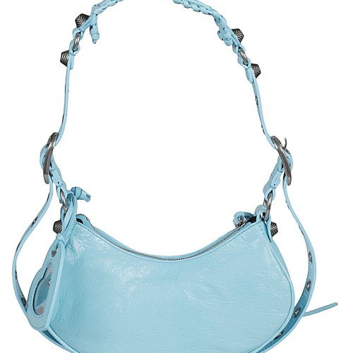 Blue shoulder bag, adjustable shoulder strap, zip closure and knotted tiralampo, antique silver finishes, removable heart mirror, mirror with a walenciaga logo tone on embossed tone, woven skin on the shoulder.