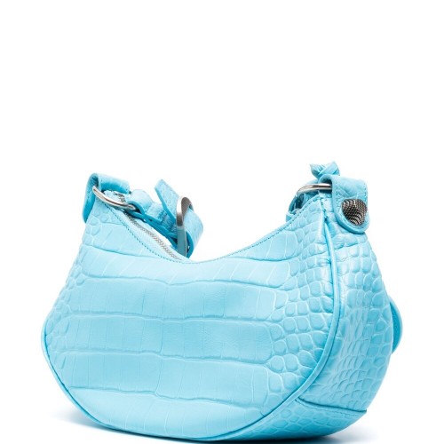 Le Cagole XS shoulder bag from BALENCIAGA featuring sky blue, calf leather, embossed crocodile effect, stud detailing, silver-tone hardware, top zip fastening, mirror tag, removable pouch and adjustable shoulder strap. We’ve partnered with Good On You — an independent agency that rates how brands perform in relation to their impact on the planet, people and animals, with a multi-criteria rating simplified to a five points scale. In order to be awarded our conscious label, larger brands need to score a minimum of four out of five (‘Good’), while smaller brands must score at least three out of five (‘It’s a start’). This item comes from a brand rated four out of five (‘Good’) by Good on You. Please note, this is a brand-level rating and does not guarantee that this product is made with conscious materials.. Learn more about what makes a product Conscious on our Conscious Criteria page.