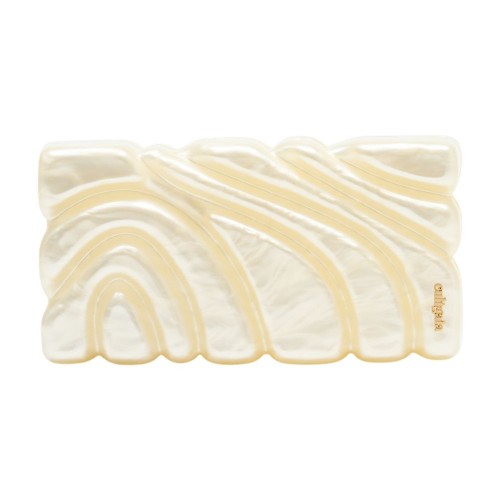 ‘Anthem’ smooth leather clutch with front belt and maxi metal buckle, zip closure, removable chain and leather shoulder strap.