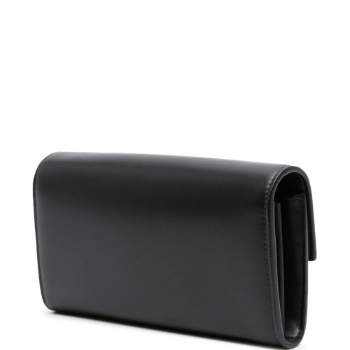 jet black lambskin smooth grain gold-tone logo plaque logo-engraved gold-tone hardware foldover top with press-stud fastening detachable chain-link shoulder strap main compartment internal logo stamp partitioned compartment internal zip-fastening pocket internal card slots leather lining gold-tone hardware