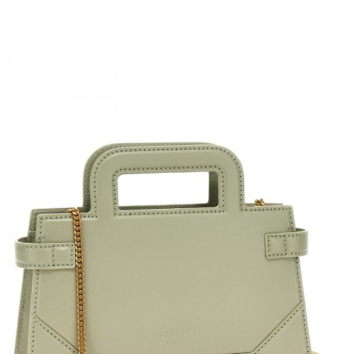 ‘B-Buzz Small’ leather handbag with front vintage metal logo, double handle, chain shoulder strap, vintage metal details, adjustable side straps, magnetic closure.