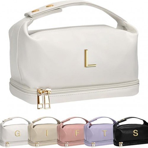 Birthday Gifts for Her Personalized Makeup Bag with Handle, Travel Gifts for Women-Cosmetic Bag with Makeup Brush Organizer, PU Leather Travel Toiletry Bag, Bachelorette Gifts for Bride