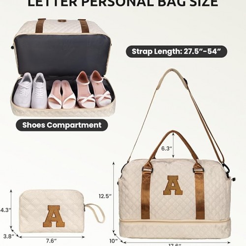 Birthday Gifts for Women-Initial Duffle Bag with Shoe Compartment, Personalized Weekender Bag, Monogram Overnight Bag, Letter Travel Bag with Makeup Bag,Preppy Gifts for Girl (Letter V)