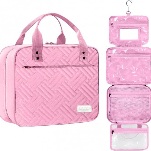 Birthday Gifts for Women Teen Girl, Personalized Initial Makeup Organizer Bag Set, Open Flat Travel Cosmetic Bag With Clear Divider and Handle(Pink,R)