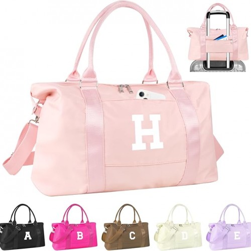 Birthday Graduation Gifts for Daughter,Initial Travel Duffel Bag Sports Gym Bag for Girls Teen Kids Birthday Gifts,Personalized Weekender Bag Carry On Tote Bags Cute Overnight Bag for Women(Brown, L)
