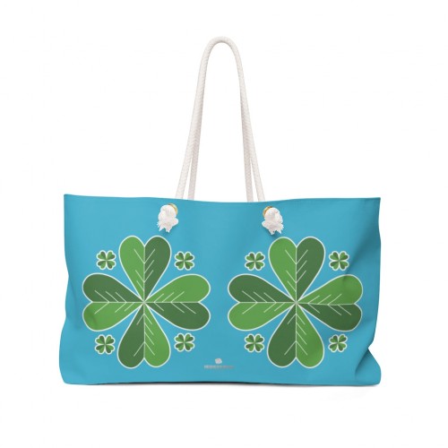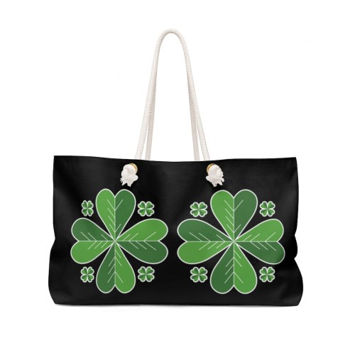 Black Green Clover Weekender Bag, Black Green Clover Print St. Patrick’s Day Designer 24″x13″ Designer Oversize Tote Weekender Bag-Designed and Printed in USA, Suitcases & Travel Bags Luggage, Four Leaf Clover Weekender Tote Bag, Bachelorette or Women’s Weekend Bag, St. Patrick’s Hangover Drunk Recovery Weekender Oversize Tote Bag
