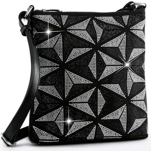 When just a stripe of sparkling glamour is called for. Elevate your daily bag with this comfy shoulder bag tote. A patterned strip of clear and turquoise sparkling stones completes your OOTD.